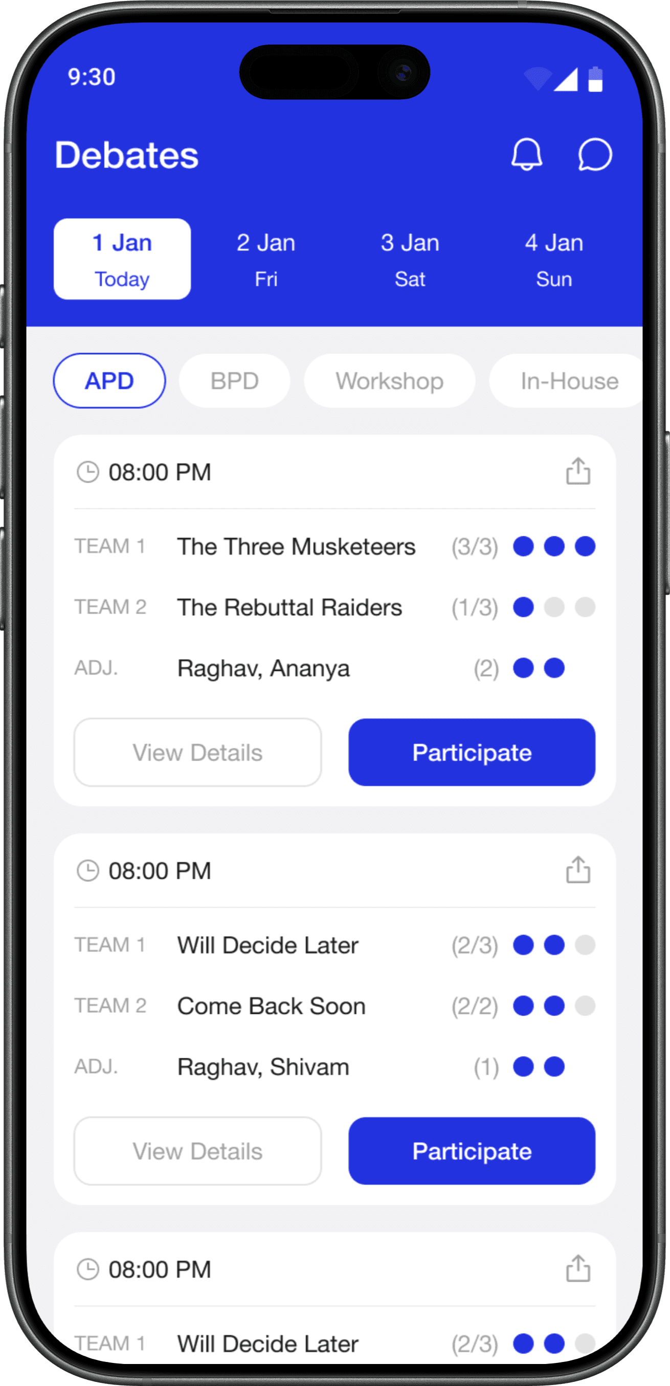 Designed and built a mobile app that simplifies the daily debate experience for APD and BPD communities. DebLog helps users find teammates and adjudicators, track tournaments, and access shared debate resources - all in one place!